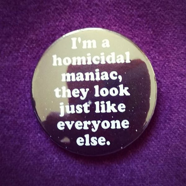 38 mm badges printed, cut and pressed by hand using a professional badge maker.
